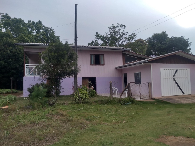 Uma casa mista dois andares com garagem semi nova, área com gramado, encosta em um peque rio, água de poço artesiano, luz trifásica, dois açudes com agua em abundância, próximo do salão da comunidade da Linha Canela Gaúcha, distante do asfalto da BR 282, 200 m aproximadamente, fácil acesso.